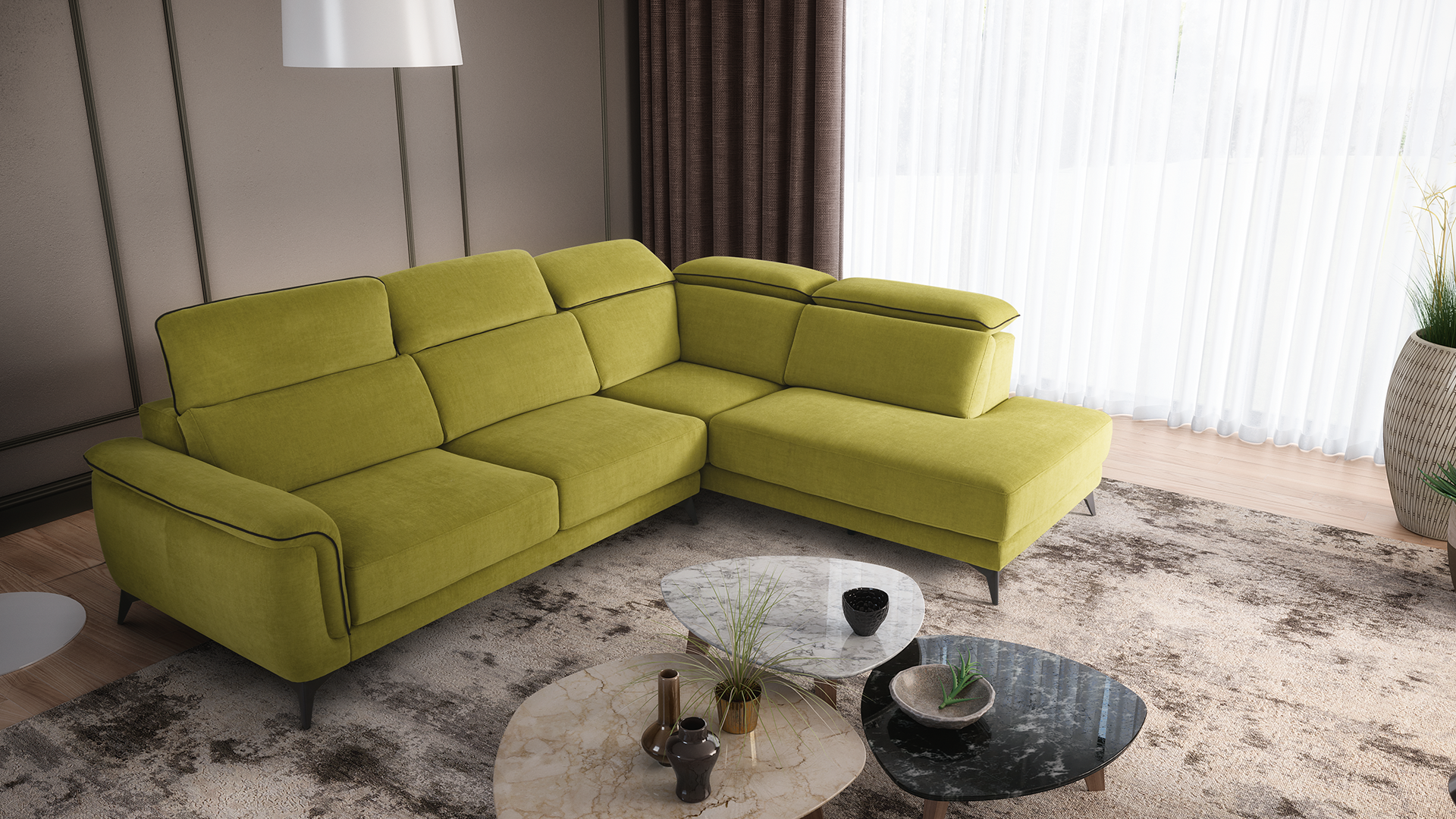 Desfrute do estilo elegante e atual do sofá ou sofá canto MANAVA, cujo design contemporâneo é a escolha perfeita para quem procura uma decoração mais moderna e sofisticada.