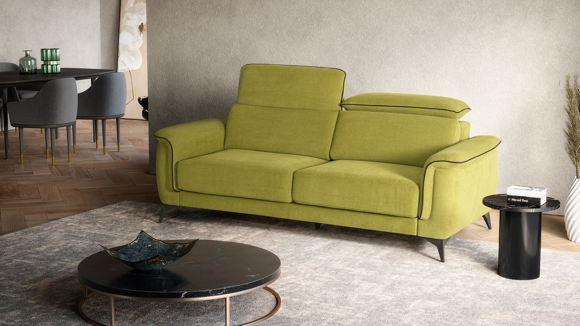 Com várias posições de ajuste, o apoio de cabeça do MANAVA foi desenhado para fornecer o máximo de conforto e ergonomia durante a utilização do sofá.